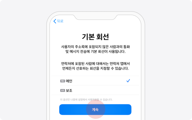 eSIM 기본 회선은 보조로 선택하기