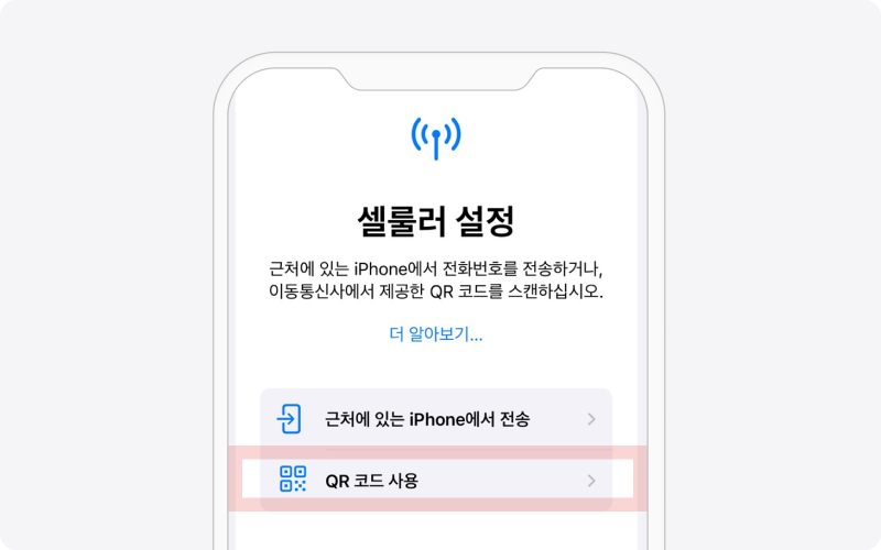 셀룰러 설정에서 ‘QR 코드 사용’ 누르기