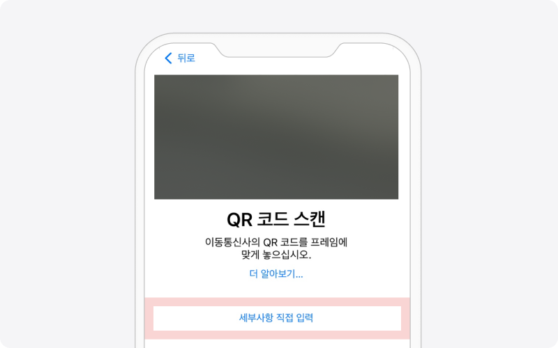 QR 코드 스캔에서 ‘세부사항 직접 입력’ 누르기