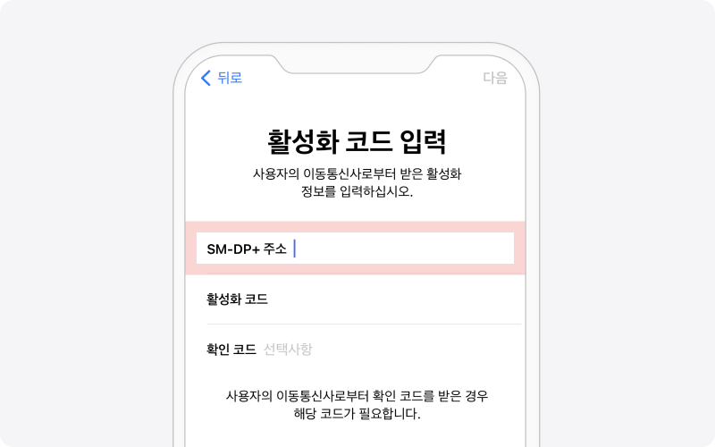 아래 SM-DP+주소 입력하기