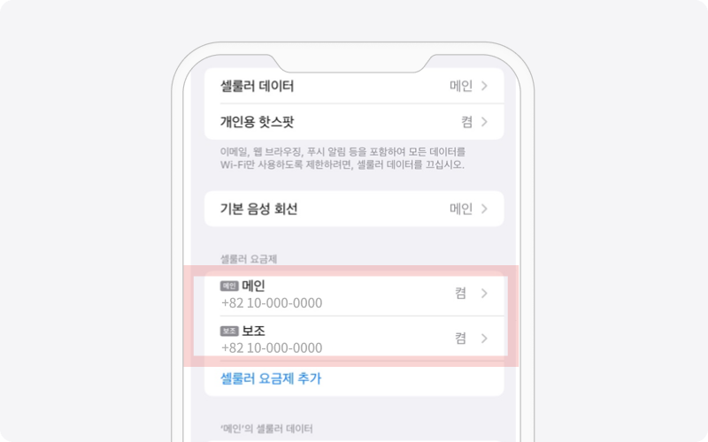 USIM 기본 회선은 메인으로,