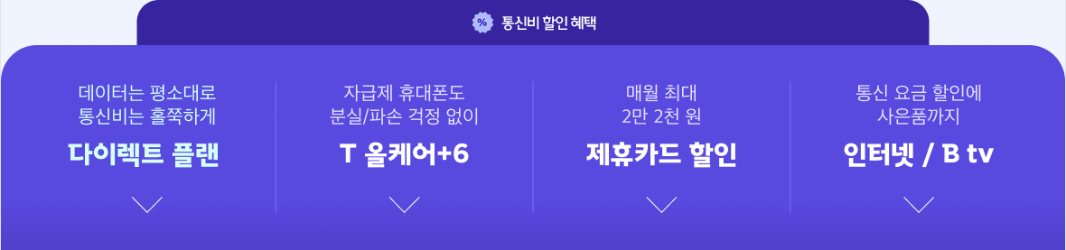 아래 결합상품을 이용하면서 다이렉트 플랜에 가입하실 수 있습니다. (이외 결합상품은 다이렉트 플랜과 함께 이용 불가)