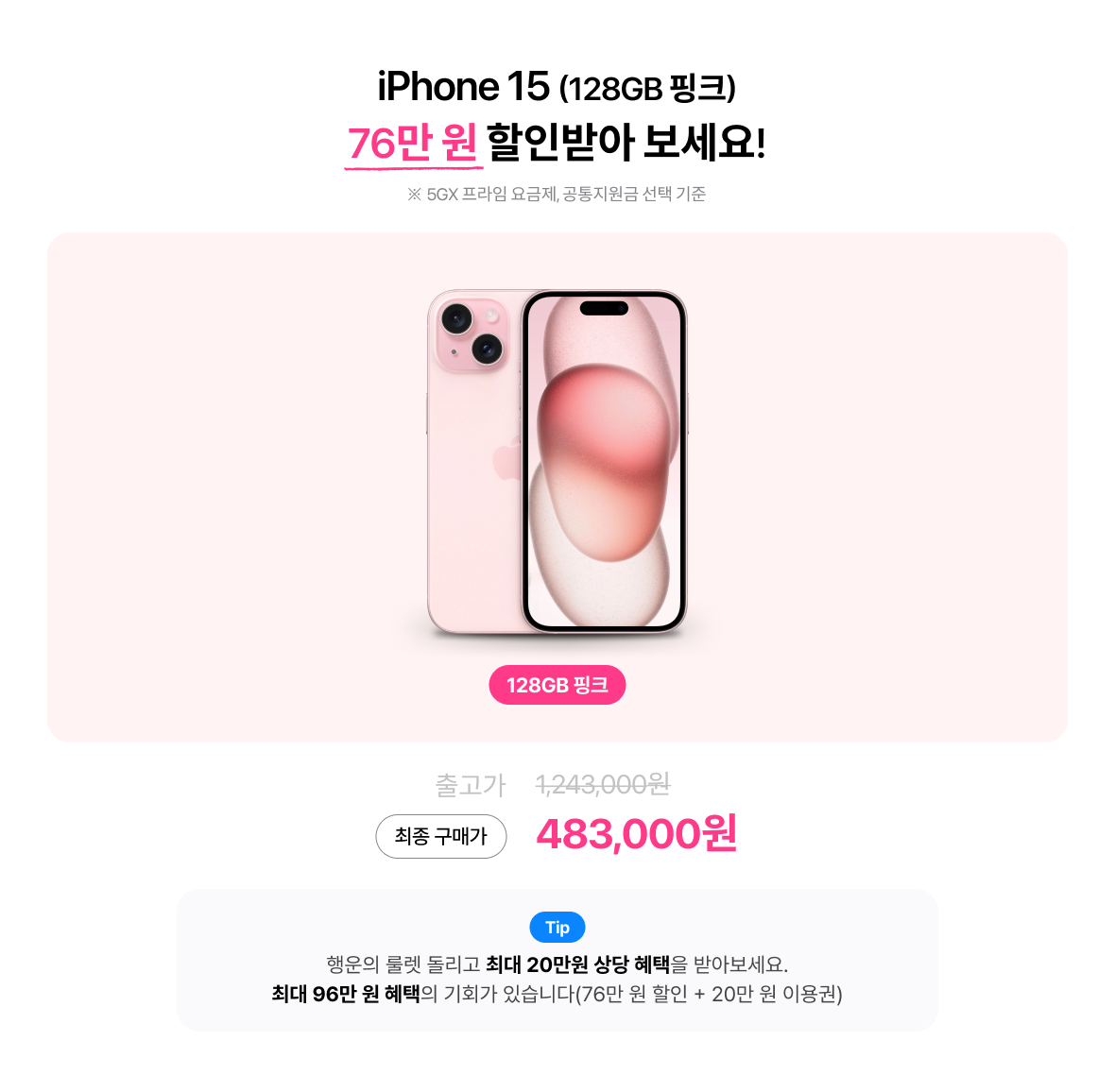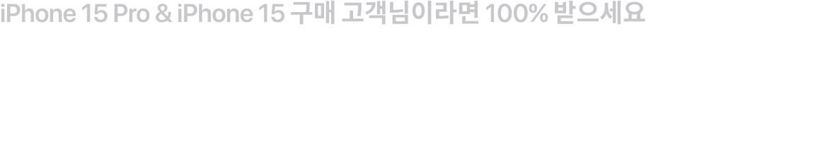 iPhone 15 Pro & iPhone 15 구매 고객님이라면 100% 받으세요