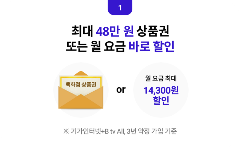 - 사은품 없이, 요금할인으로 더 알뜰하게 즐기는 B tv!