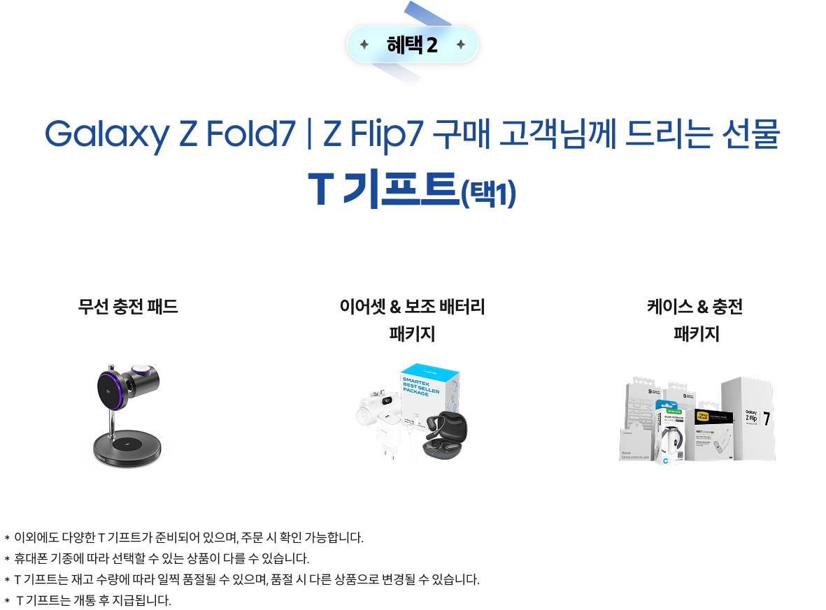 [혜택 2] Galaxy Z Fold7 | Z Flip7 구매 고객님께 드리는 선물 T 기프트(택1)