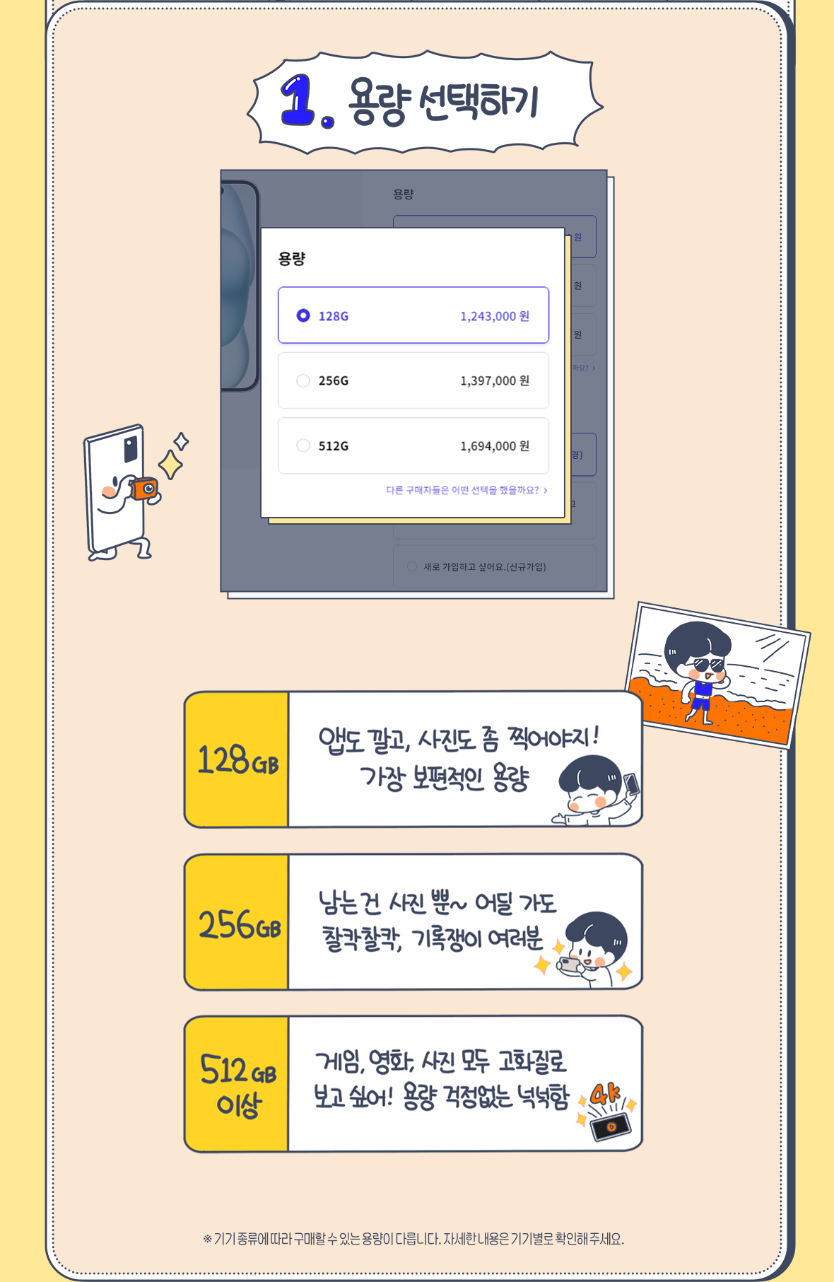* 기기종류에 따라 구매 가능한 용량이 다릅니다. 자세한 사항은 각 기기별로 확인해주세요.