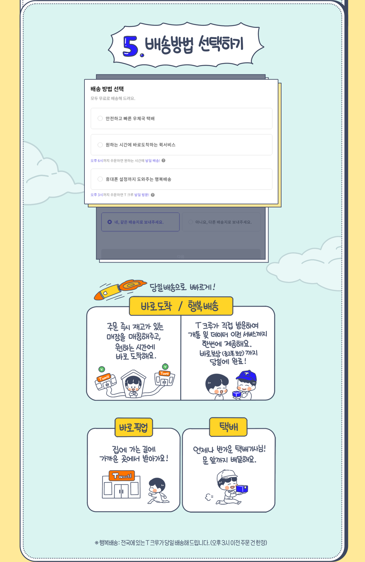 * 행복배송은 전국 단위 T 크루를 통한 당일 배송을 제공합니다.(오후 3시 이전 주문 건 한정)