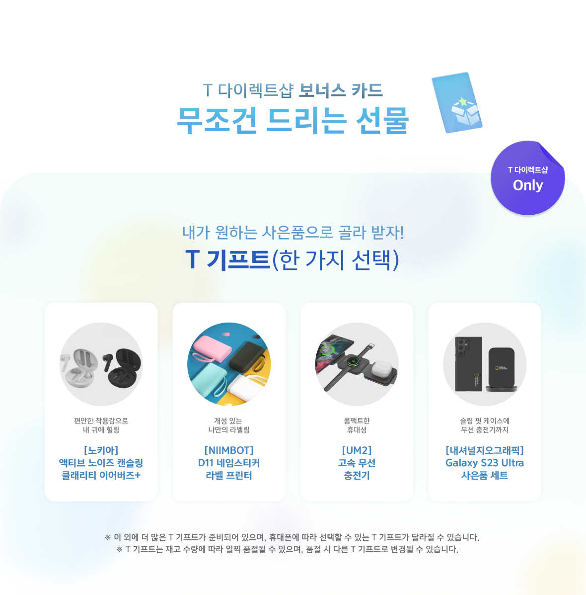 다이렉트 플랜 이용 시 약정 할인(T 지원금약정, 선택약정, 무약정플랜)을 받으실 수 없습니다.