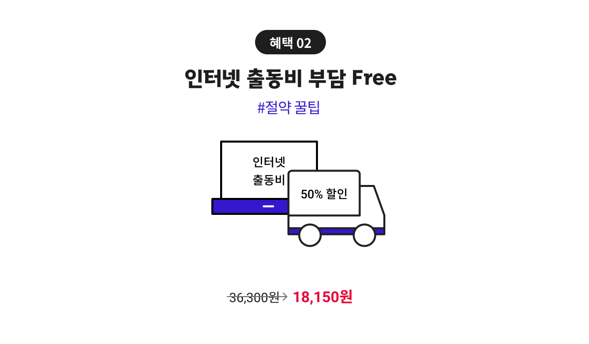 인터넷 출동비 50% 할인 36,300원 > 18,150원