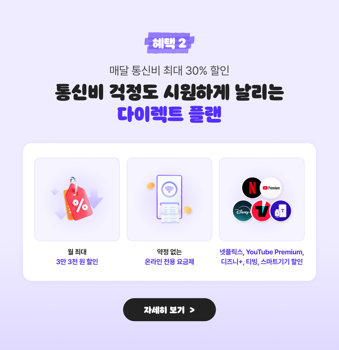 혜택 2매달 통신비 최대 30% 할인