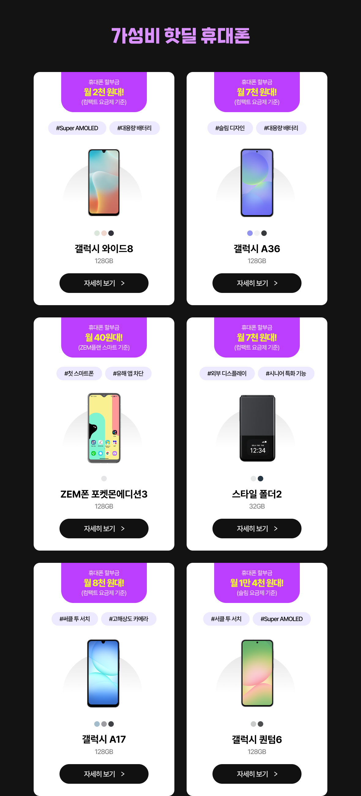 - 컴팩트 요금제: 월 3만 9천 원(월 데이터 8GB+400kbps, 테더링/공유 기본 제공 데이터 내 이용, 집전화/이동전화 무제한, 영상/부가통화 300분, 문자 기본 제공)