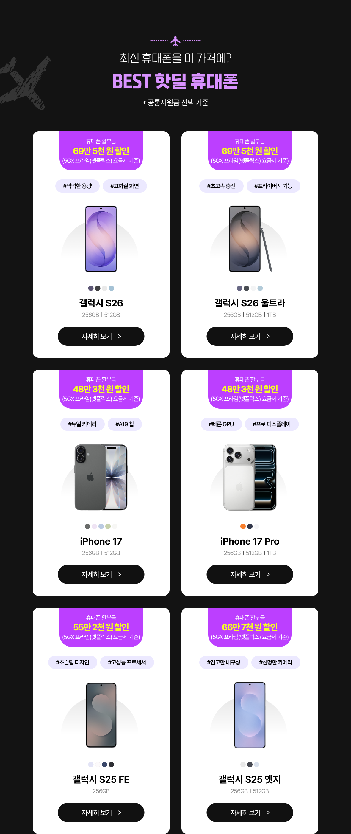 ※ 지원금은 휴대폰 가격에서 할인되며, SK텔레콤 정책에 따라 금액이 수시로 바뀔 수 있습니다. 구매 전 확인해 주시기 바랍니다.