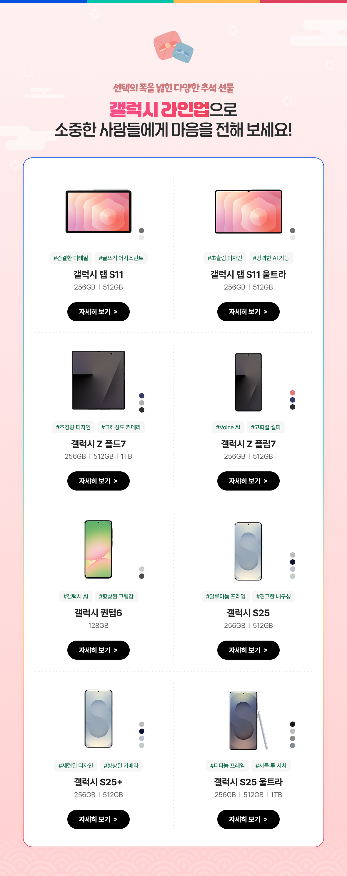 갤럭시 라인업으로 소중한 사람들에게 마음을 전해 보세요!