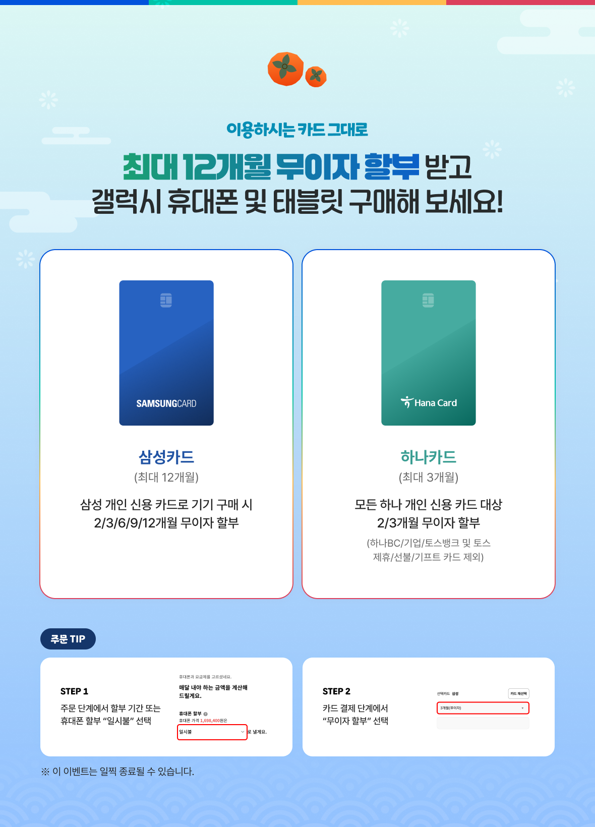 최대 12개월 무이자 할부로 갤럭시 휴대폰 및 태블릿 구매해 보세요!