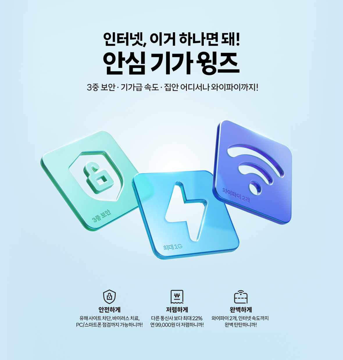 3중 보안, 기가급 속도, 집안 어디서나 와이파이까지!