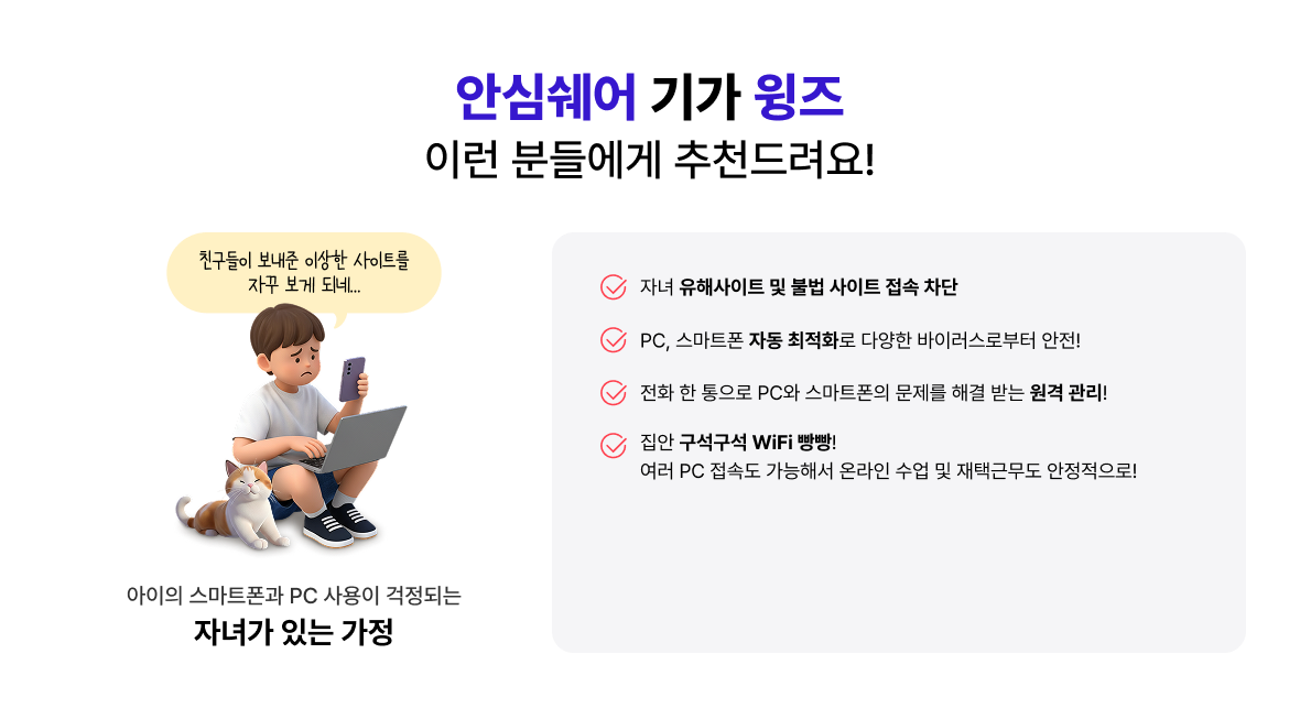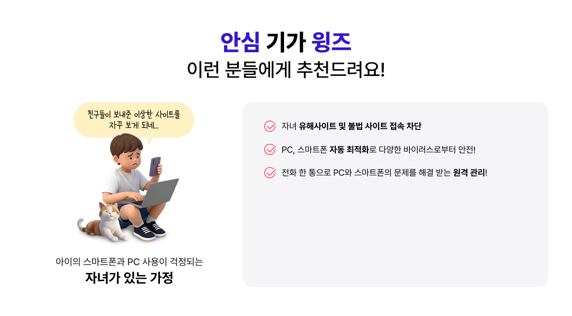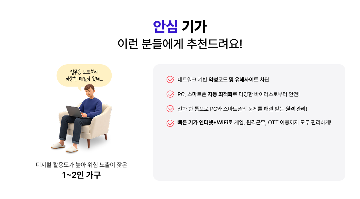 국내 유일 네트워크 기반 악성코드 차단 PC/노트북 최대 3회선 동시 접속 가능