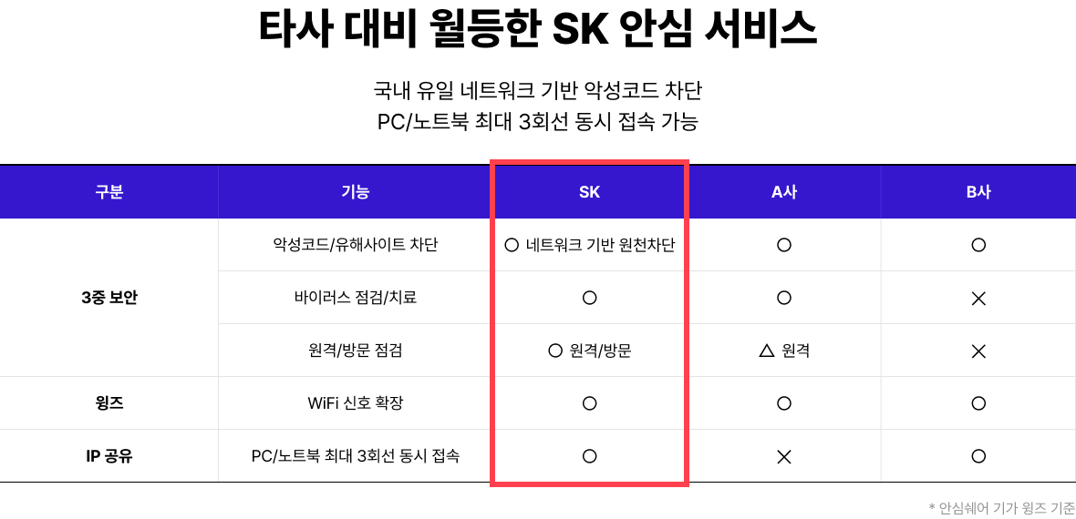 | 3중 보안 | 악성코드/유해사이트 차단 | ○ 네트워크 기반 원천차단 | ○ | ○ |